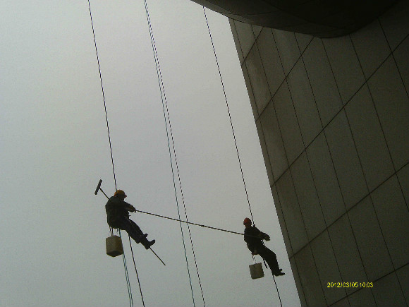 高層外墻工程包括: 高層外墻清潔、高層玻璃幕清潔、高層外墻粉刷、高空外墻廣告安裝。因?yàn)楦邔油鈮Υ嬖谥kU(xiǎn)性和復(fù)雜性, 所以這項(xiàng)工作是有著相當(dāng)程度的科學(xué)性和專業(yè)性。